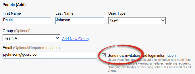 Just add your people to ScheduleBase and invite them by entering their names and email addresses. You can designate people as staff, schedulers or administrators.