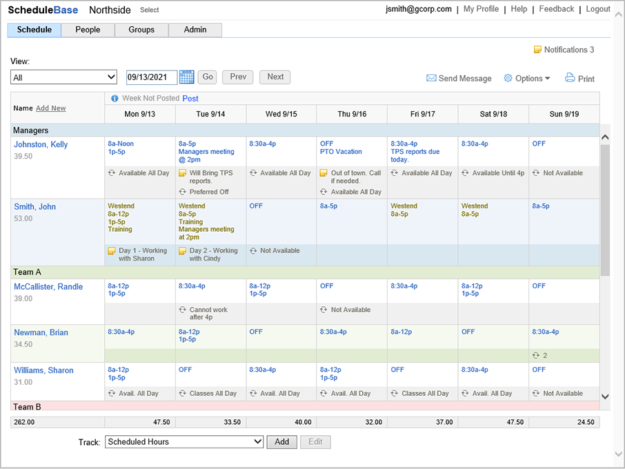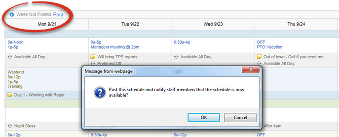 When you’re finished scheduling, post the schedule to instantly notify your team the schedule is ready. If you make a schedule change, simply re-post the schedule and only those people affected will be notified.