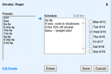 Enter schedule information in any format you'd like. Enter shifts, notes, jobs or any information that you need you to communicate to your staff.