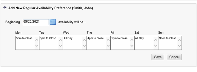 When scheduling, you'll see a person’s regular availability and any requests. All of the information you need to schedule your staff is right at your fingertips.